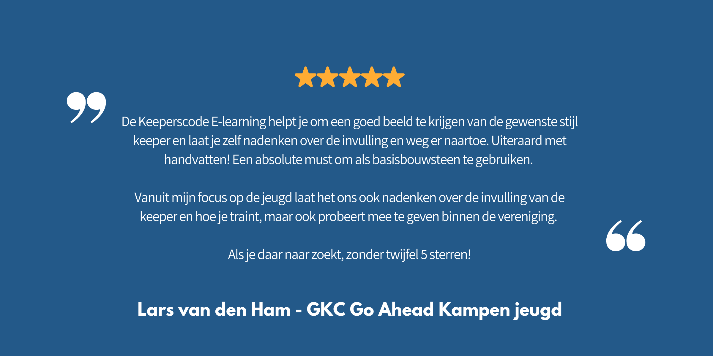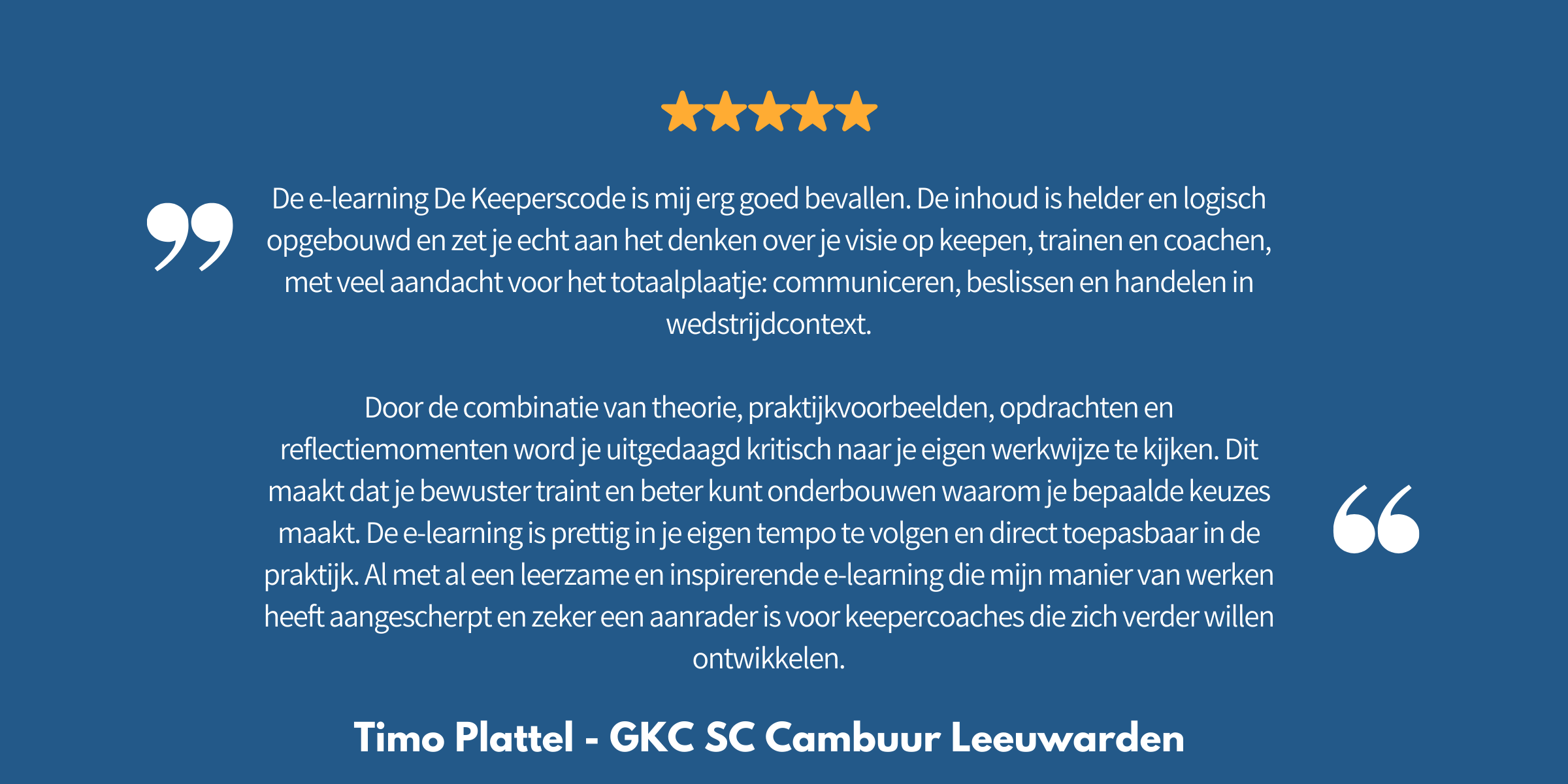 Het is het zover. De Keeperscode E-learning is live. Voor alle team- en keeperstrainers is deze E-learning toegankelijk en waardevol! Wil je écht een eigen denk- en werkwijze ontwikkelen die bij jou past én impact maakt op jouw keepers? Dit is de plek!