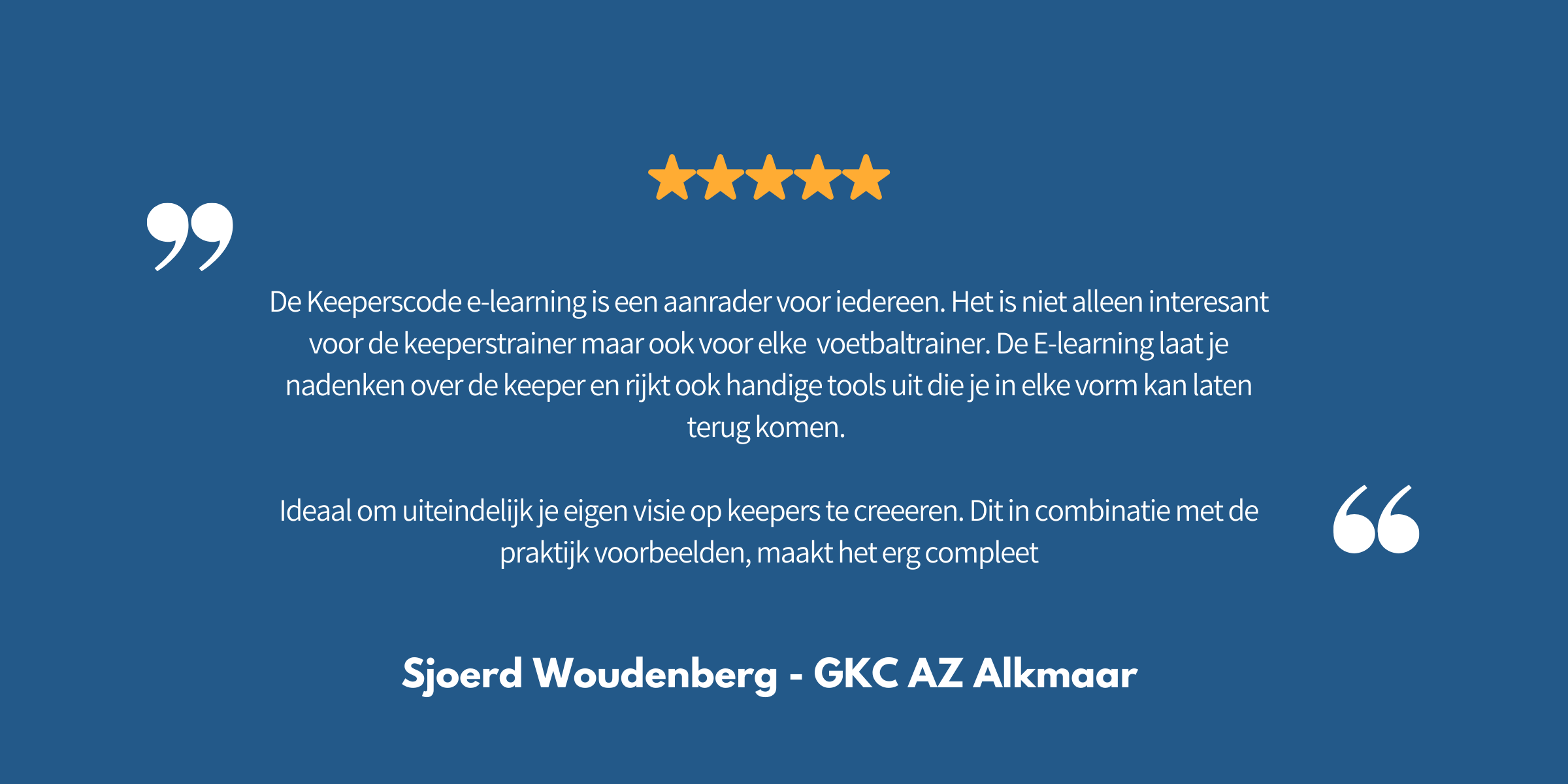 Voor slechts €119,- (t/m 5 februari, daarna €149) krijg je al toegang tot alles. Deze (actie)prijs is bewust laag gehouden. De E-learning moet toegankelijk zijn voor iedere gemotiveerde (keepers)trainer die zijn/haar impact wil vergroten en de eigen visie wil concretiseren.
